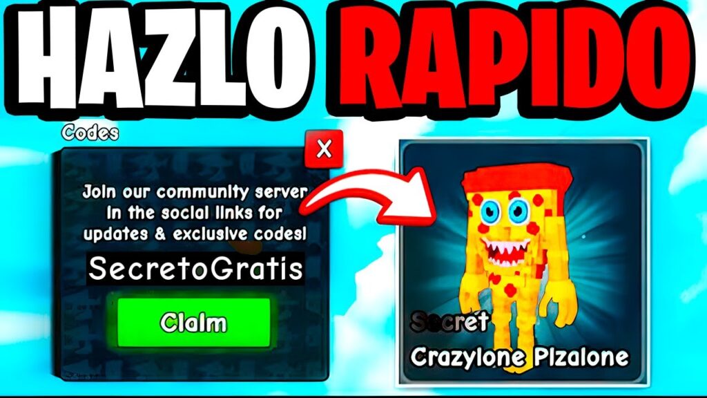 - Busca el menú o la opción “Canjear código”, “Redeem” o un NPC con la etiqueta “Codes”.